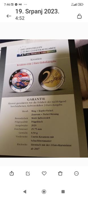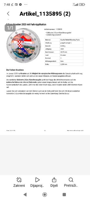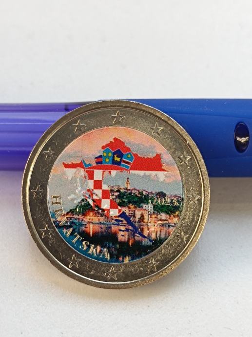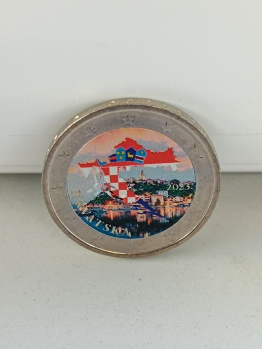 Kovanica od 2 eura u boji. Hrvatska. Obojano umjetničko izdanje. Mob. 0992674205. Poštarinu plaća kupac.