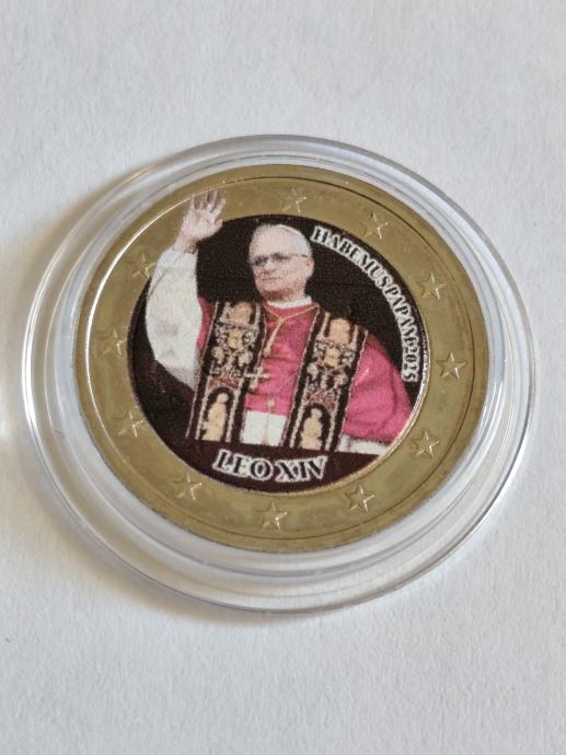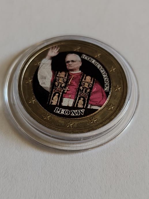 Kovanica od 2 eura u boji koja je izdana povodom izbora novog Pape Lava XIV. UNC. Umjetničko izdanje. Poštarinu plaća kupac. Mob. 099 267 4205.