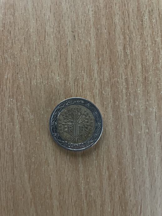 Kovanica od 2 eura 2000. godina Francuska sa greškom prilikom kovanja
