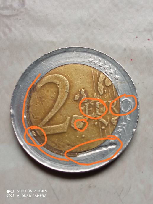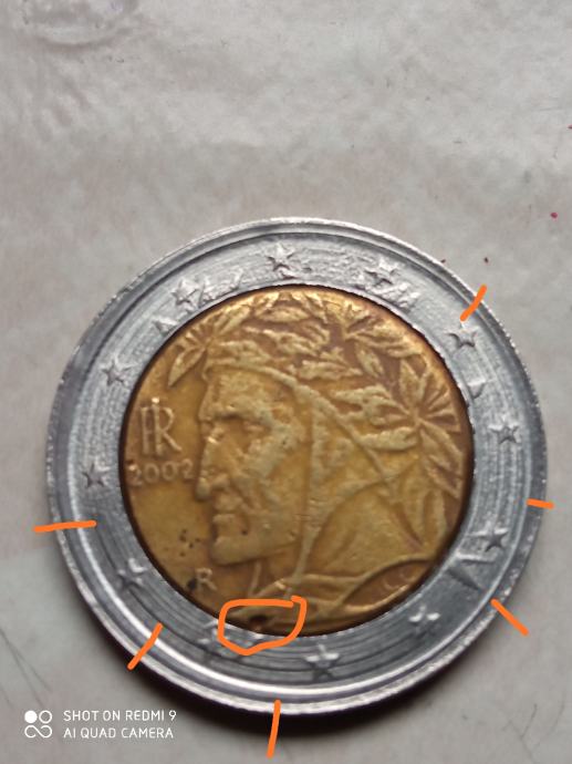 Prodajem kovanicu od 2 eura-Dante iz 2002 g. Rijedak primjerak sa puno grešaka kod kovanja. Greške nastale kovanjem i nedostatkom materijala vidljive su na slikama. Cijena po dogovoru.