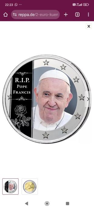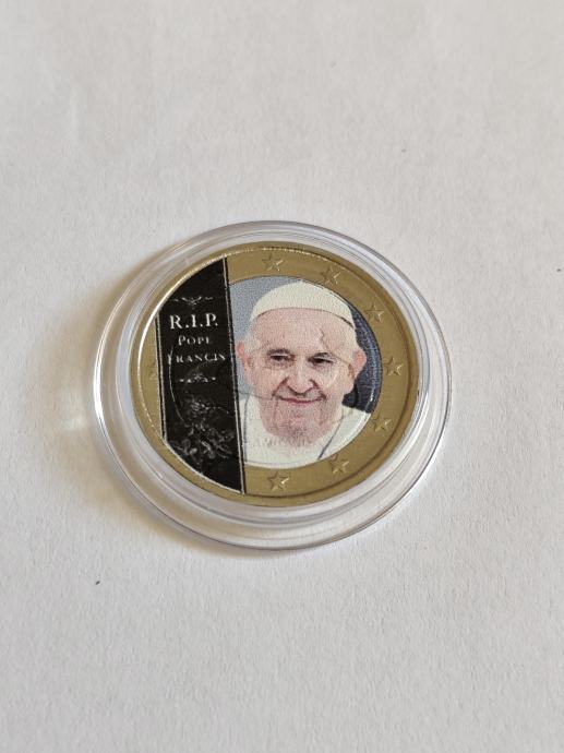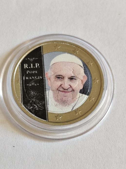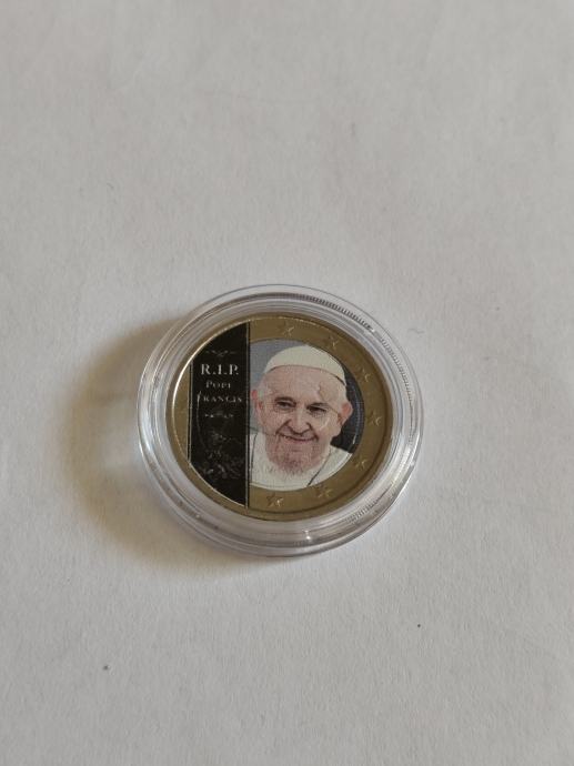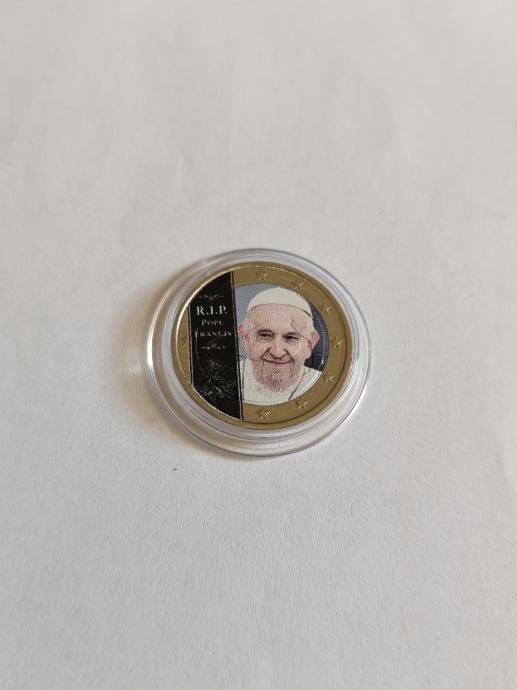 Kovanica od 2 eura izdana u spomen na Papu Franju. UNC. Umjetničko izdanje. Poštarinu plaća kupac. Mob. 099 267 4205.