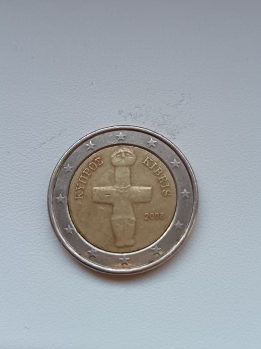 2 euro kovanica s Malte, izdanje 2008., gornji desni rub cudno otisnut