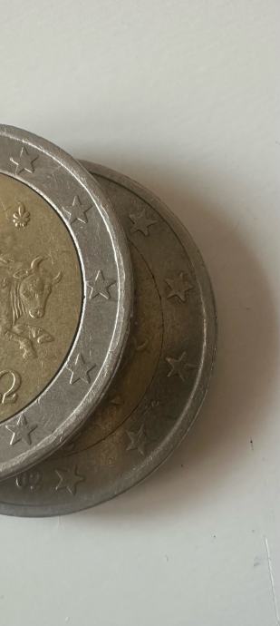Kovanica 2€, s greskom, desne zvijezdice blize rubu nego lijeve, otisnuto slovo S, na zadnjoj slicice se vidi greska