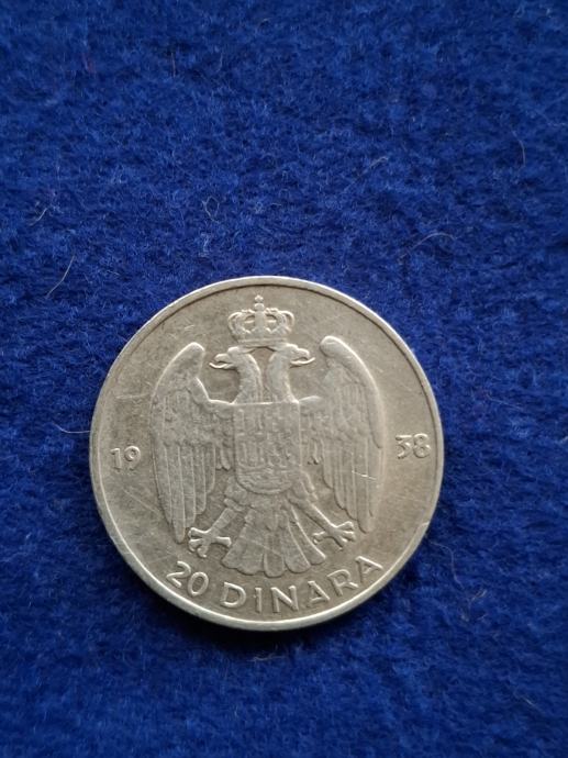 KOVANICA. 20 Din. iz 1938 god. Srebro. Mob