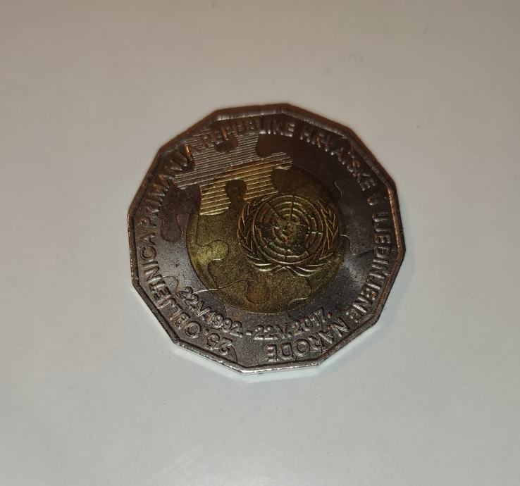 Prodajem kovanicu od 25 kuna iz 2017 godine,poznatu kao PUZZLA.Izdana je u povodu 25.obljetnice primanja RH u UN.