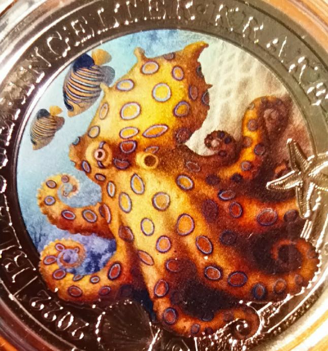 Na prvoj kovanici je plavoprstenasta hobotnica.