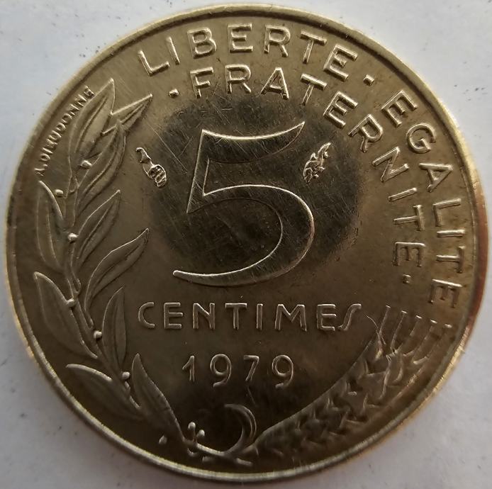 Kovanica 5 Centimes (Francuska) 1979.