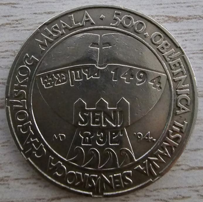 Kovanica 5 Kuna 500. Obljetnica Senjskog Misala (Hrvatska) 1994.