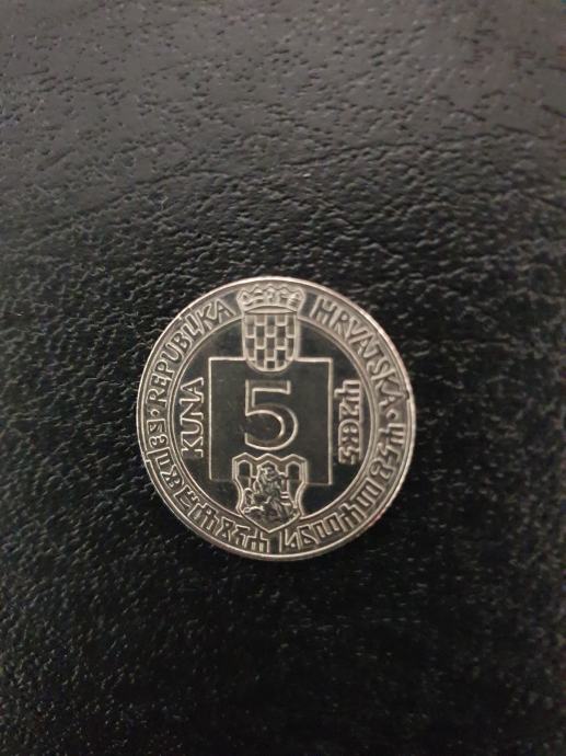 Kovanica 5 kuna "Senjski misal" izdana 1994.godine.