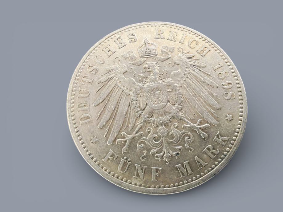 Kovanica 5 Mark srebro Saska 1898