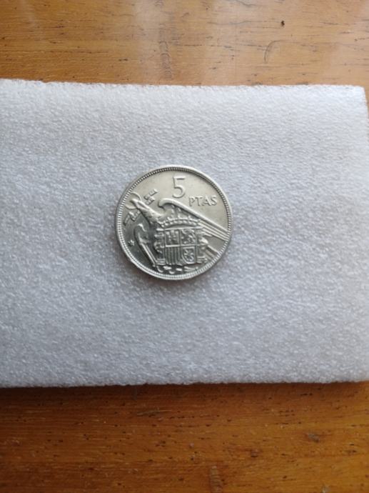 Francisco Franco 5 peseta tzv "inside the star" novčić debljina 1,8 mm,promjer 23 mm težina 5,7 grama bakar/nikl krause 786.Stanje C. VIDLJIVO NA SLIKAMA.ZAMJENE NE TREBAM DOSTAVA HP POUZECEM.