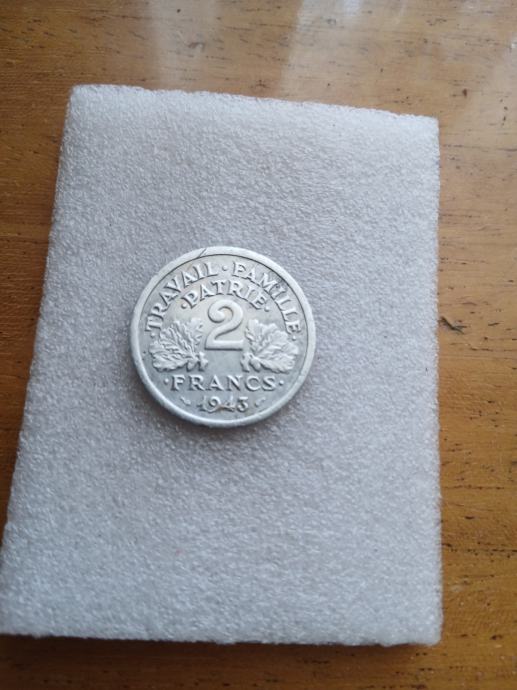 Petainovih okupacijskih WW II , 2 franka 1943 aluminij debljina 1,7mm diametar 27 mm težina 2 g Krause No KM 904.Stanje vidljivo. DostavljamHP pouzećem, ne mijenjam se.