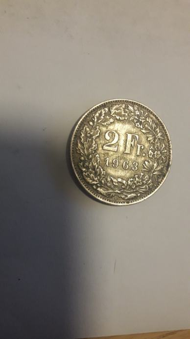 Kovanica 2 franka iz 1963, SREBRO, Svicarska prodajem za 15 €, nalazi se u ZG, mob 098 717 906