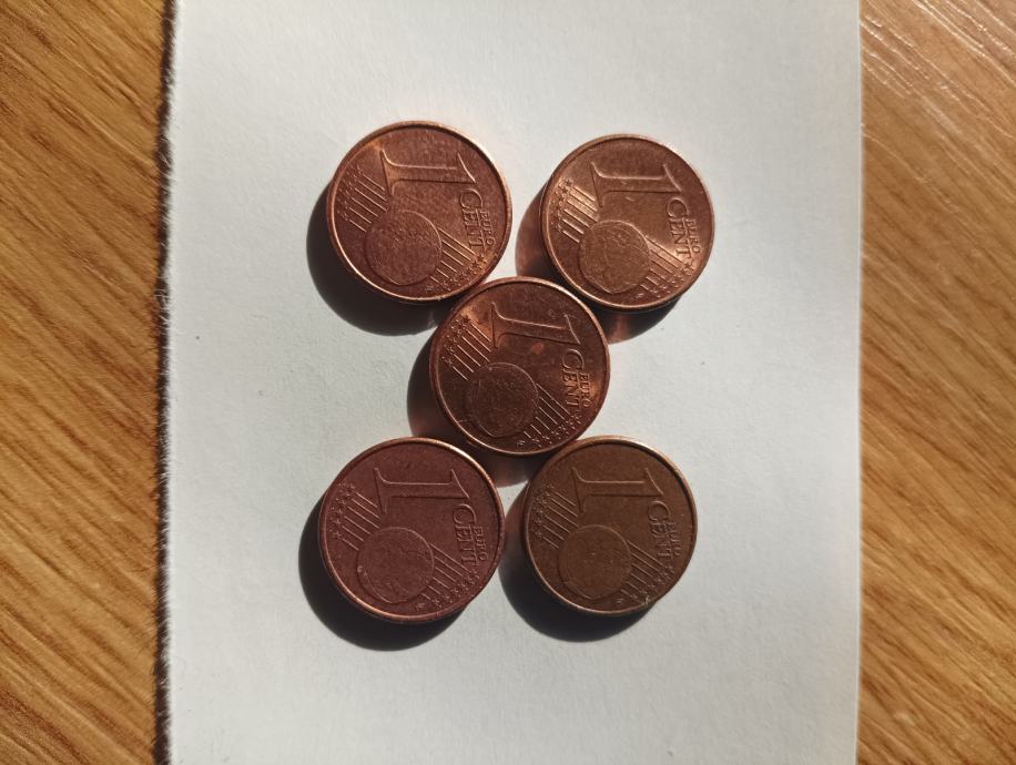 5 kovanica koje imaju višak materijala u istom predjelu ali ipak se razlikuju jedna od druge a i potječu iz različite godine proizvodnje.
