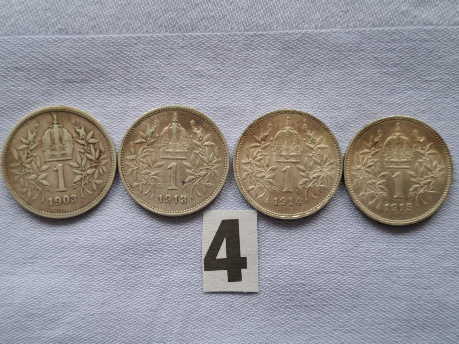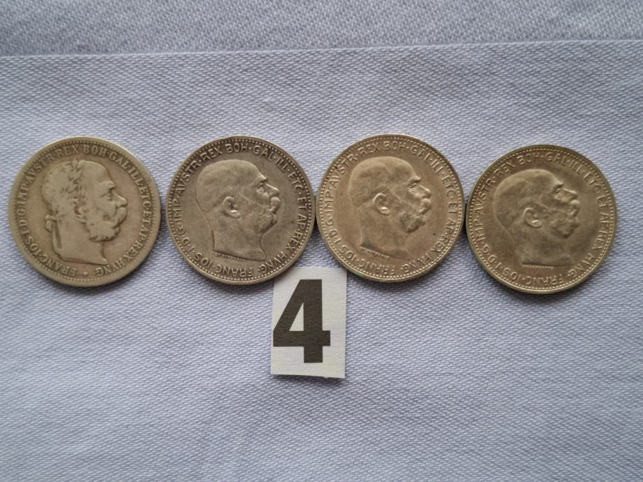 KOVANICE. 1 korona. Lot-4. Aust. 4 kom. Srebro. Mob