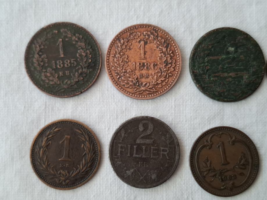 11 kovanica Austro-Ugarske sa različitim godinama izdavanja.