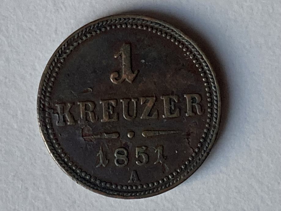 1 krajcar (Kreuzer) austrijski car Franjo Josip I, 1851 A, 12 €