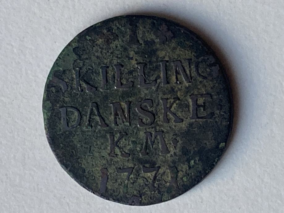 1 skilling dansk, kralj Kristian VII, K.M. iz 1771. g. treći tip - velika C i kruna, 25 €