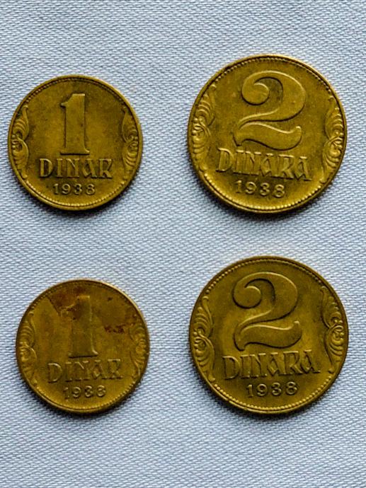 KOVANICE. Kraljevana Jugosl. 1938 god. 1 i 2 Din. po dva puta. Mob