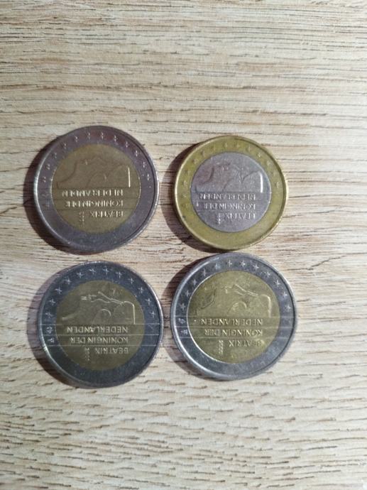 Prodajem 4 kovanice od toga tri u iznosu od 2€ i jedna u iznosu od 1€ sa likom kraljice Beatrix. Dvije kovanice od 2€ su od 2001. godine, a jedna kovanica od 2€ je od 2000. godine. Kovanica od 1€ je od 1999. godine.