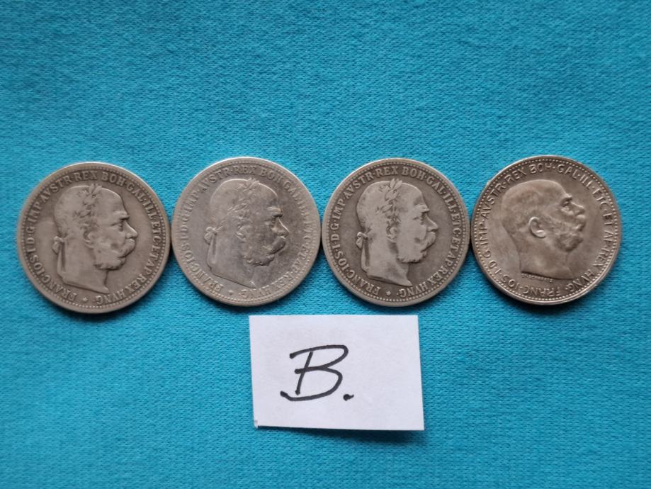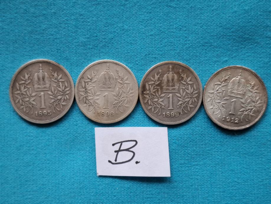 KOVANICE. Lot-B. 1 Korona-Au. 4 kom. Srebro. Mob