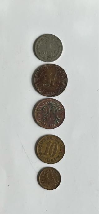 5 komada sa različitim , 1 dinar , 50 para, 20 para,10 para, 5 para