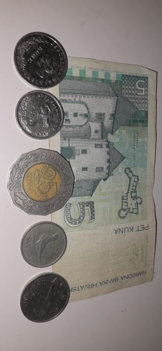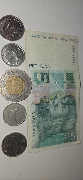 Novčanicu od 5 kn, kovanicu od 25 kn i ostale kovanice sa slike u kompletu (150)€..