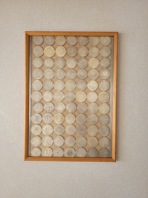 Prodajem kopije raznih kovanica u prirodnoj veličini. Nalaze se poslagane u ramu pa mogu poslužiti kao dekoracija na zidu. Cijena za komplet je 120 eura.