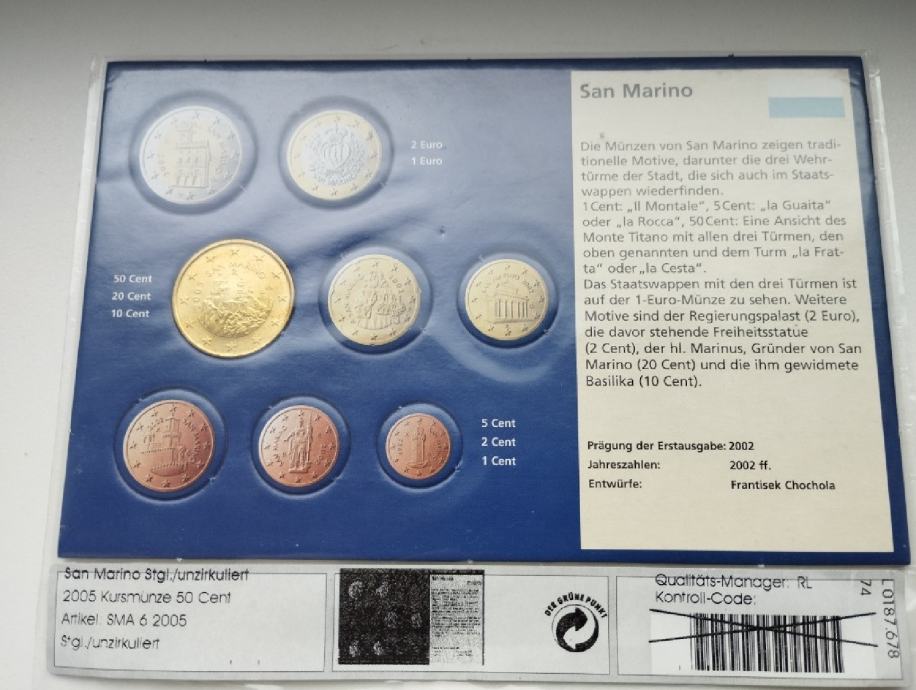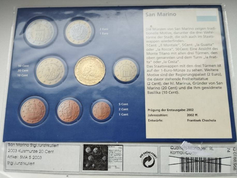 Kovanice San Marino.1,2,.5.,20.cent.50.cent.