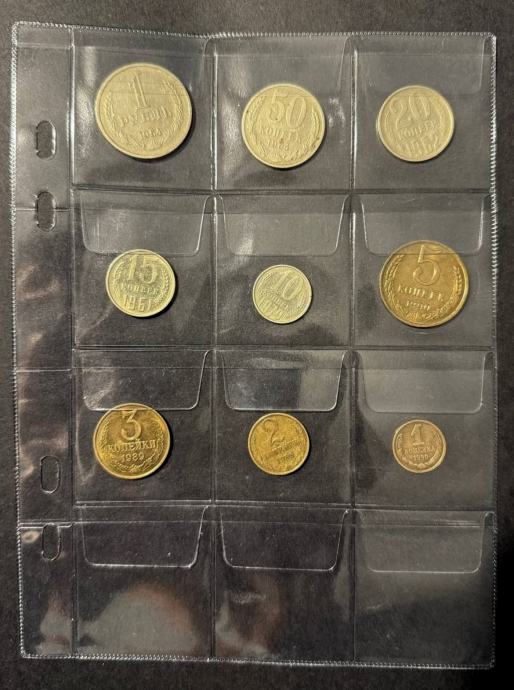 Kovanice Sovjetskog Saveza (SSSR) 1961.-1990. Sve apoene u optjecaju! Ovaj proizvod sastoji se od 9 starih kovanica u optjecaju iz Sovjetskog Saveza (SSSR). Svaka kovanica je jedinstvena i pruža uvid u povijest i valutu ove nacije. Set uključuje: 1 kopejku (1990.), 2 kopejke (1986.), 3 kopejke (1989.), 5 kopejki (1990.), 10 kopejki (1979.), 15 kopejki (1961.), 20 kopejki (1962.), 50 kopejki (1964.), 1 rublju (1964.)