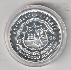 LIBERIA 20 $ 1998 AG UNC