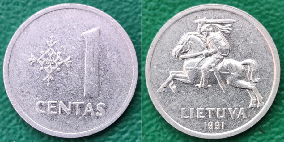 Lithuania 1 centas, 1991 +/