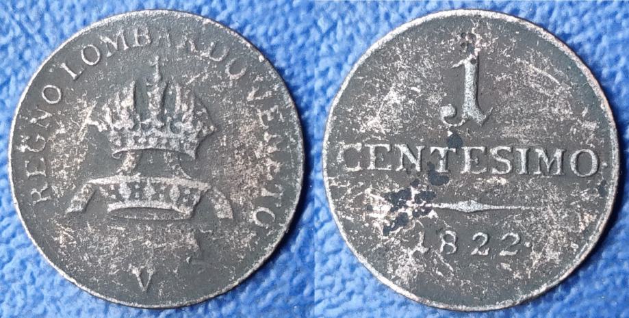 Lombardy-Venetia 1 centesimo, 1822 "V" - Venice rijetko ***/ 6,oo EURO