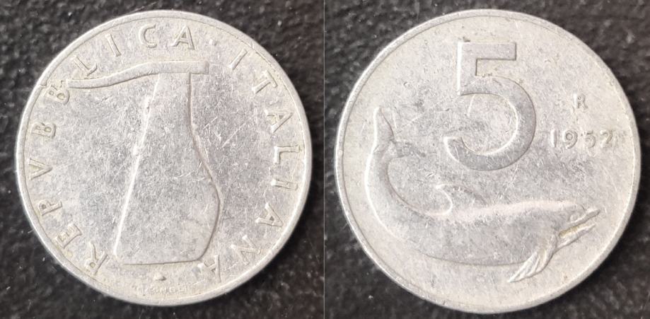 LOT Italy 5 lire 1952 + 1953 + 1954 + 1955 + 1975