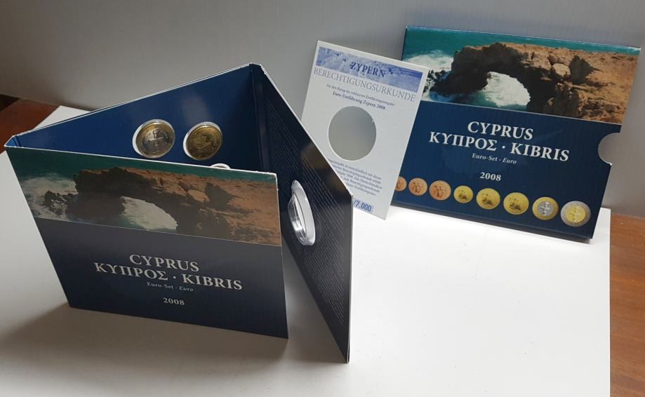 LOT KOMPLET EURO KOVANICE, CIPAR 2008, PROOF, UNC