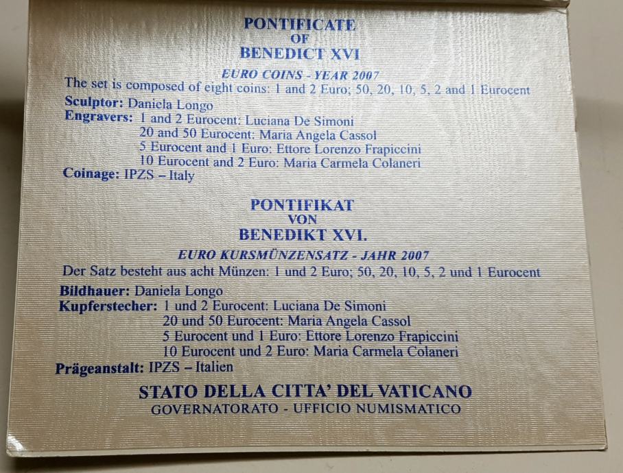 LOT KOMPLET EURO KOVANICE DRŽAVA VATIKAN 2007, PROOF, UNC, BENEDICT 16