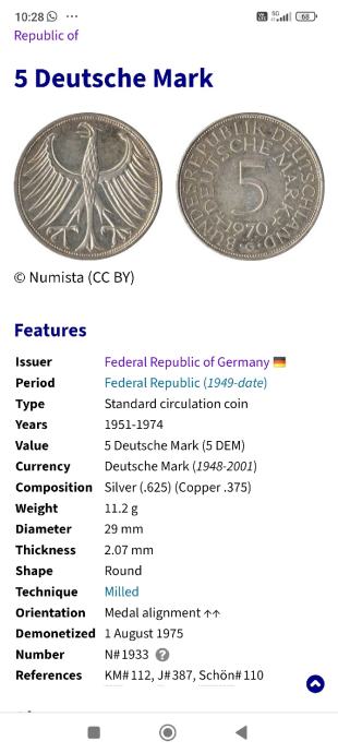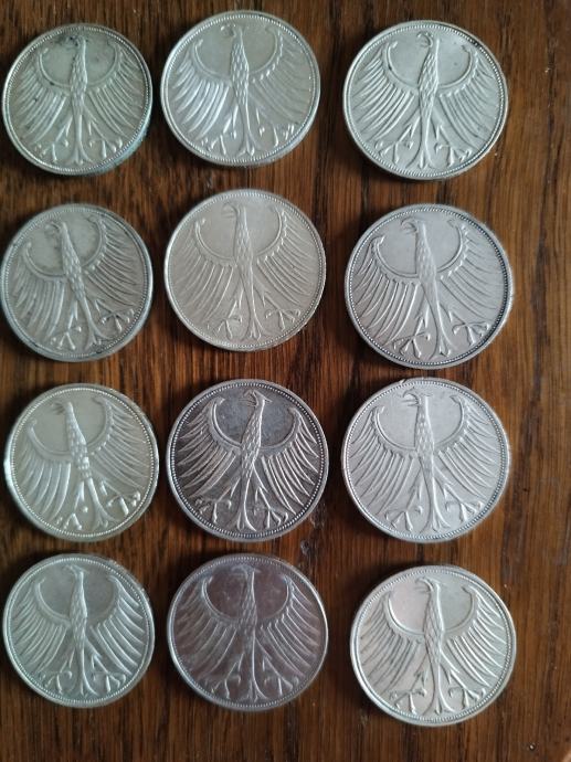 Lot srebrnjaka 5 Mark 1969 - 1972 Njemačka