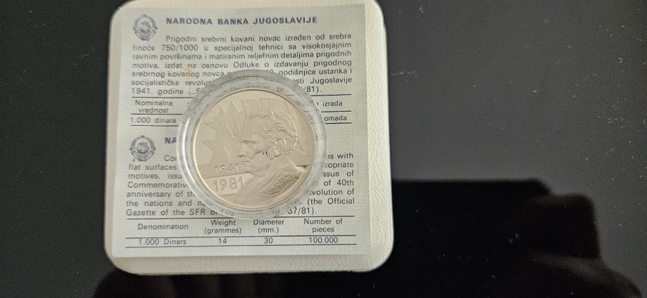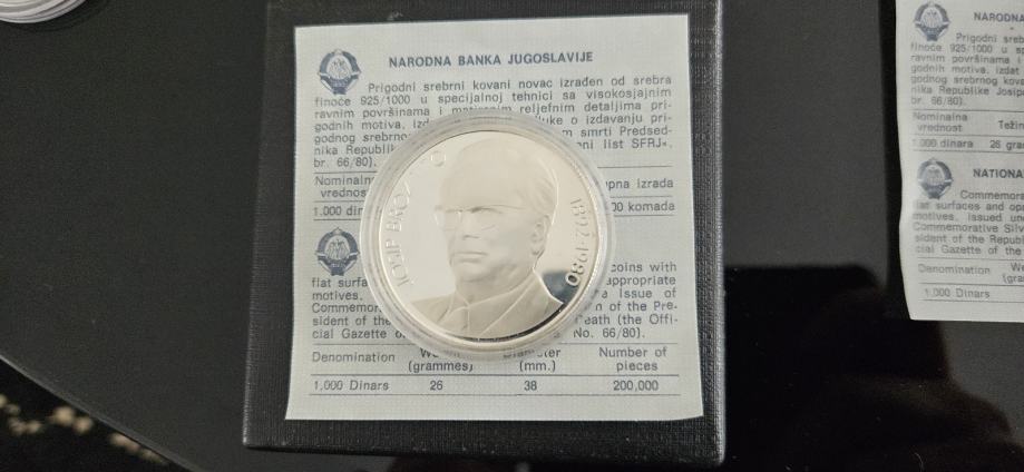 6 komada 1000 dinara 1980 sa kutijama,fali jedan certifikat.