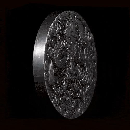 Srebrna kovanica od 2 unce iz australske kovnice Perth Mint, limitirano na 1888 komada. Visoki reljef, patiniran, originalna kutija i certifikat.