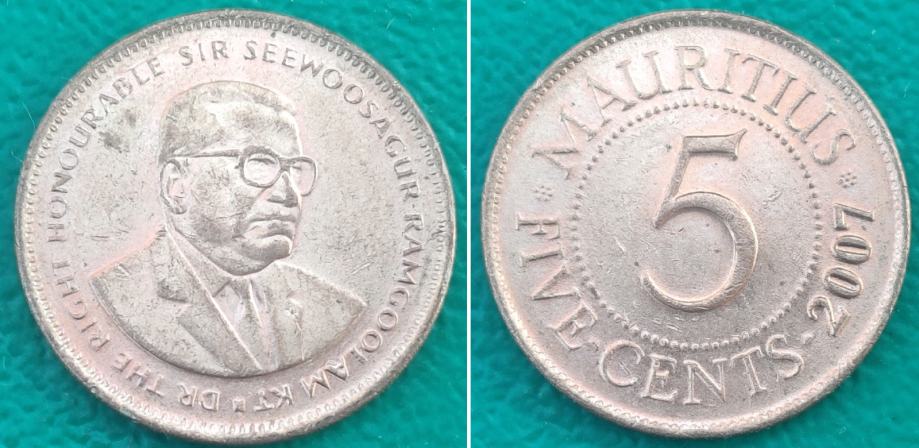 Mauritius 5 cents, 2007 Sir Seewoosagur Ramgoolam ***/