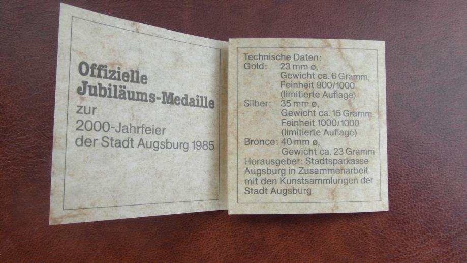 Medalja Savezne Republike Njemačke 2000 godina Augsburga 1985.