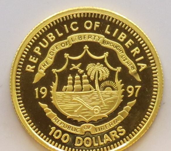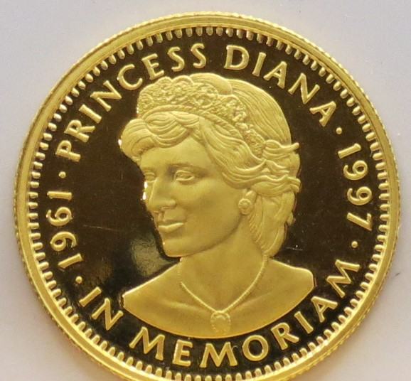 Zlatnik 100 Liberijskih dolara finoce 999/1000 iskovan 1997godine povodom pogibje princeze Dajane težina 6,23 grama