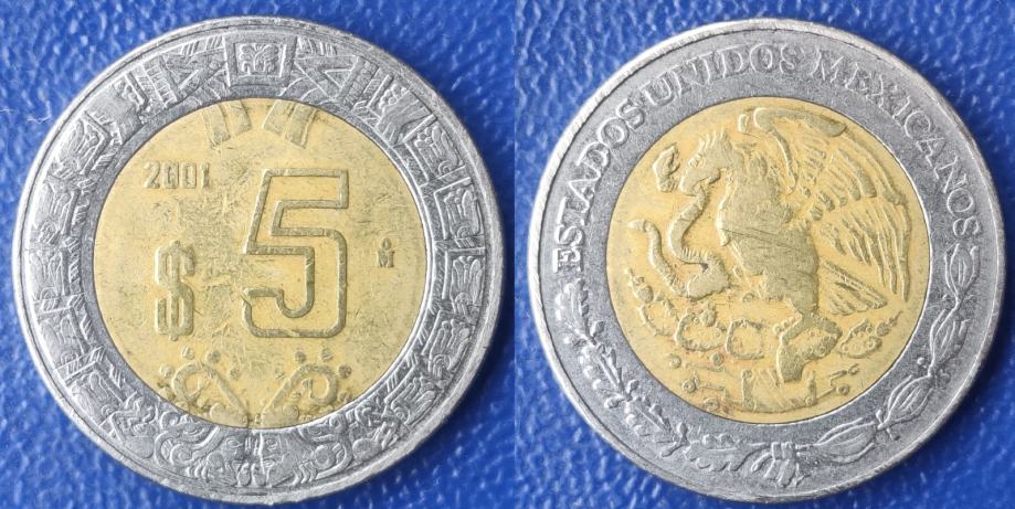 Mexico 5 pesos, 2001 +/