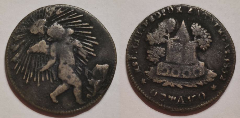 Zacatecas, Mexico copper 1/8 real or octavo real coin.