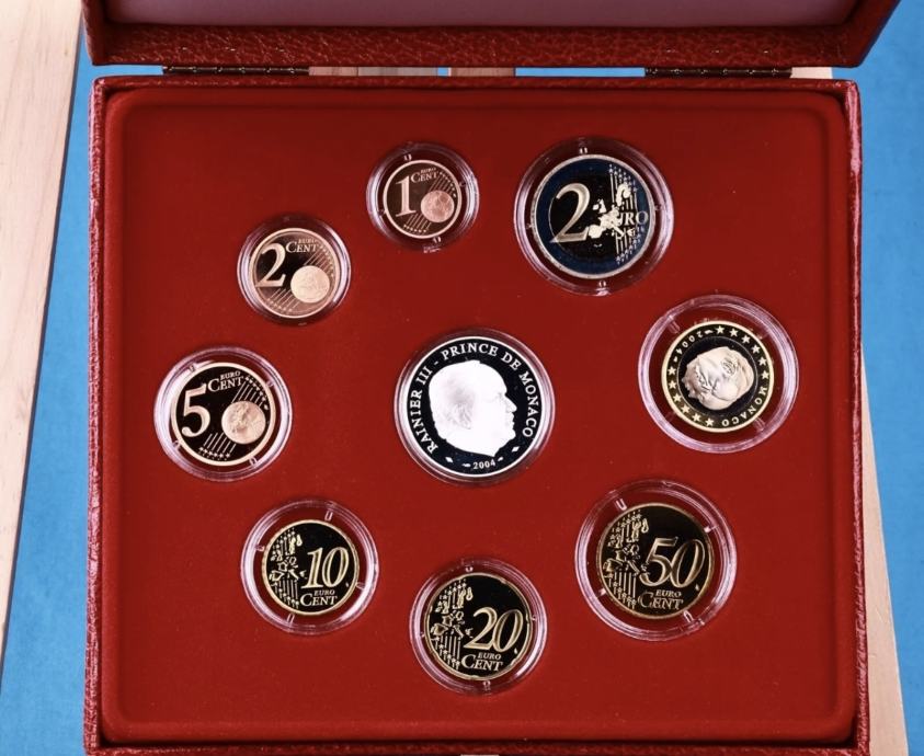 Monako 2004 PROOF set sa srebrnjakom 5€ Sante Devote = 280€