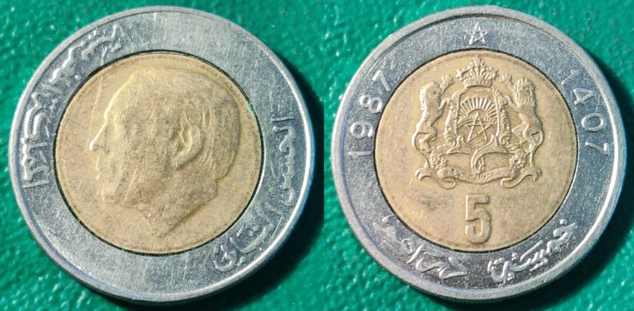 Morocco 5 dirham, 1407 (1987) / 1,30 EURO !!!