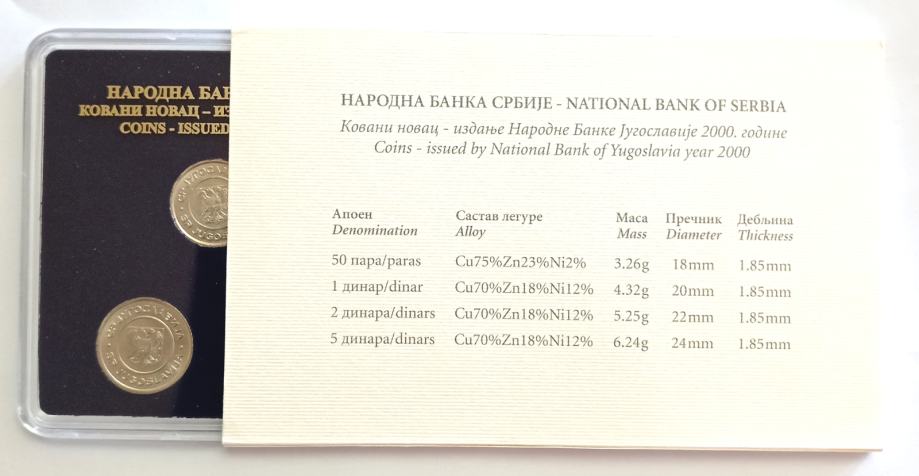Narodna banka Srbije - numizmatički komplet 2000 godine - PP