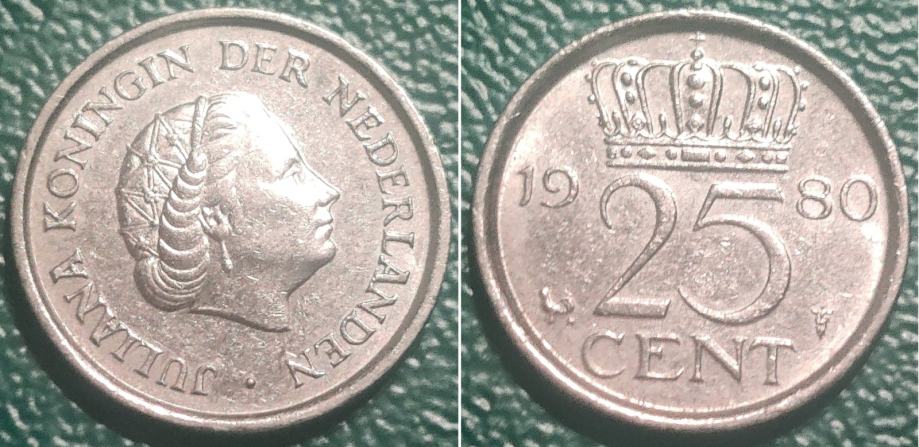 Netherlands 25 cents, 1980 ***/ 1,00 EURO !!!