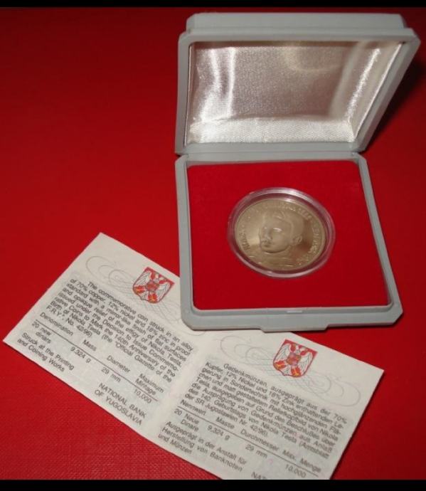 Nikola Tesla - 20 dinara 1996 .g. - BOX + COIN + CERTIFICATE