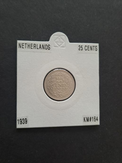 Nizozemska (Netherlands) 25 Cents 1939 srebro UNC